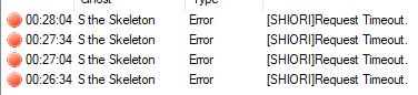 The events are firing now! But there are some new issues. On windows 10, it seems that every once in a while when the screensaver ends, my main ghost will disappear (I am currently running 4 ghosts). If I have Tama open, SSP will freeze. It will give me error messages every minute or so, and I managed to get the error log open to view these errors. I couldn't do anything else besides force SSP to close. If I do not have Tama open, everything will run normally, but my main ghost will be gone. Script input, surface test, and running events from the right click menu do nothing to help. It won't even reload the ghost. I did find that minimizing and unminimizing the ghost will bring it back, as will allowing the screensaver to run again. This was difficult to test, since I have to wait for the screensaver to happen and the issue doesn't happen every time, so it's possible that I just got bad luck and it isn't actually related to Tama. On windows 7, things are a bit different. My ghosts seem to interrupt the screensaver as soon as it occurs, though they will still use both of the events. Sometimes the ghost would disappear similar to how it did on windows 10, though at one point I had it alternating between two ghosts. Unsure how or why this happened, possibly because I don't have any ghost selected as the default ghost on that installation of SSP? With Tama open, it did eventually freeze and start putting out errors to the error log like before. So far without Tama open, it hasn't crashed, even though the ghosts sometimes disappear. I'll update this if I notice any new behaviors. |