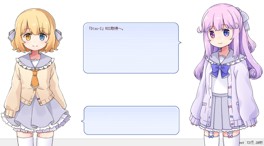 | Description | kero側のバルーンが表示されている状態でヘッドラインやメールチェックが発生すると sakura側しか喋っていないのにkero側は空のバルーンが表示されることがあります。 以前はsakura側のみ喋っている場合はkero側のバルーンは閉じていましたが最近の更新 で空のバルーンが表示されるようになりました。 SSP/2.5.34 Windows 10 64bit 21H1 ゴースト「偽コンフィズリー」 | ||||