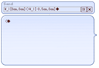 | Description | SSP 2.5.56、SSP 2.5.57にてCtrl+Sからのスクリプト入力の方法で確認しました。 スクリプト \_l[0em,0em]◇\_l[-0.5em,0em]◆ この場合◆は左に表示されるはずですが、実行するとなぜか右側の位置になってしまいます。 他の参考として-1.0emと-0.9emで指定した場合も(少なくとも0.1emの差ではないほど)大きくずれましたので、小数点以下が0の時は通常通りの動作のようでした。 | ||||