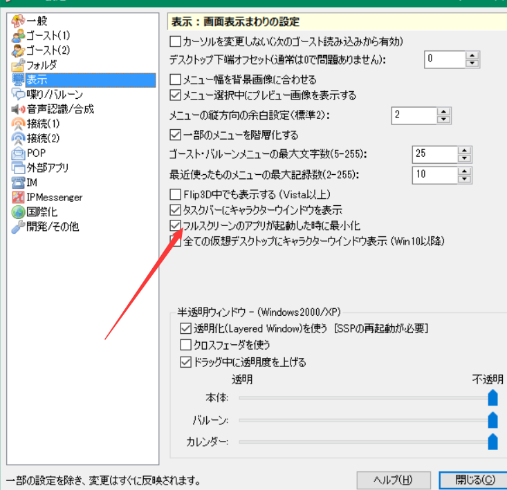 | Description | 一开始是可以的,但过了一会似乎就不起作用了,人格持续显示在右下角。 (即使不设定保持最上层,在打开全屏软件后按下windows弹出开始菜单也可以看出SSP没有被最小化)。 这个问题好像以前就存在,但没找到哪里提交bug。 | ||||