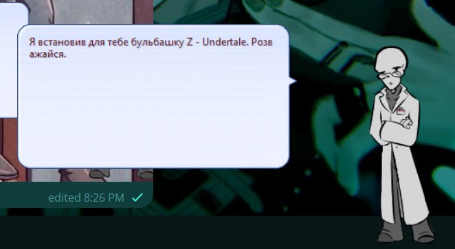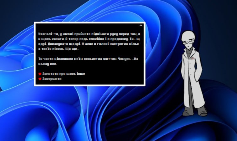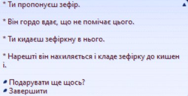 Scripts with text with effects \1\f[name,Comic Sans UT,Comic Sans UT.ttf]\f[height,16]\s[200]минулого разу, коли ми сиділи з \f[color,255,255,0]ним\f[color,default], \f[color,255,255,0]він\f[color,default] заснув на столі. \i[31]це було кумедно.\w8\n\n\f[name,Papyrus UT,Papyrus UT.ttf]\f[height,16]\s[202]\i[31]\i[37]ТАК! \w5\f[color,255,255,0]ВІН\f[color,default] ПРОСТО ВПАВ, \i[82]БАЦ! \w5\s[202]ТОДІ \f[color,255,255,0]ВІН\f[color,default] ЗАСНУВ.\w8\n\n\f[name,Comic Sans UT,Comic Sans UT.ttf]\f[height,16]\s[200]\i[72]ми малювали на \f[color,255,255,0]його\f[color,default] паперах, \w5\i[31] було весело.\w8\n\n\f[name,Papyrus UT,Papyrus UT.ttf]\f[height,16]\s[204]\i[57]\i[31]\i[72]АЛЕ ПОТІМ \f[color,255,255,0]ВІН\f[color,default] ПРОКИНУВСЯ І ПОСАДИВ НАС НАЗАД У КАМЕРУ. \f[color,255,255,0]ВІН\f[color,default] БУВ НЕЗАДОВОЛЕНИЙ.\w8\n\n\f[name,Comic Sans UT,Comic Sans UT.ttf]\f[height,16]\s[209]\i[57]\i[72]Я думаю, що твій малюнок був дійсно гарний.\w8\n\n\f[name,Papyrus UT,Papyrus UT.ttf]\f[height,16]\s[224]\i[71]\i[37]ДЯКУЮ!\w8\n\n\![*]\q[Повернутись,OnBrotherMenu]\n\![*]\q[Нічого,blankCANCEL]\e"\e \1\s[202]\i[83]\i[55]\f[name,Papyrus UT,Papyrus UT.ttf]\f[height,16]МИ СИЛЬНО ШУМІЛИ ПОКИ ГРАЛИ, І Я ДУМАВ, ЩО\f[color,255,255,0]ВІН\f[color,default] СКАЖЕ НАМ ПРИПИНИТИ, АЛЕ \f[color,255,255,0]ВІН\f[color,default] ЦЬОГО НЕ ЗРОБИВ.\w8\n\n\f[name,Comic Sans UT,Comic Sans UT.ttf]\f[height,16]\s[211]\i[84]\i[55]може, \f[color,255,255,0]він\f[color,default] хотів пограти з нами.\w8\n\n\f[name,Papyrus UT,Papyrus UT.ttf]\f[height,16]\s[224]\i[71]\i[81]\f[color,255,255,0]ВІН\f[color,default] НЕ ЗРОБИВ БИ ТАКОГО! \w5\s[208]АЛЕ БУЛО Б ДОБРЕ, ЯКБИ \f[color,255,255,0]ВІН\f[color,default]...\w8\n\n\![*]\q[Повернутись,OnBrotherMenu]\n\![*]\q[Нічого,blankCANCEL]\e |