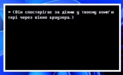 Scripts using ' \0\s[5]\i[58]\i[100]Скільки ж магії використовують людські комп'ютери...\e \0\s[0]\i[62]\i[76]* (Він спостерігає за діями у твоєму комп'ютері через вікно браузера.)\e"\e |