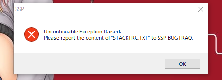 SSP.EXEと同じ場所にSTACKTRC.TXTが出来上がっているはずなので、ここに添付してください。 エラー表示だけだと今のところわかりません。 このダイアログが英文なのは申し訳ないですが… |