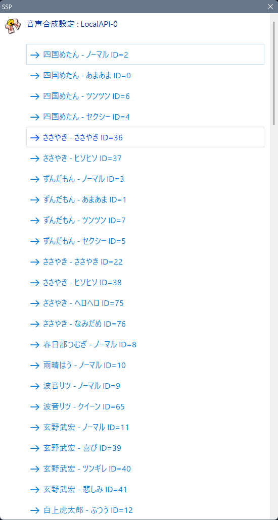 | Summary | 0000704: 設定 > 音声認識/合成 > VOICEVOX > 設定 > ボイスID:参照 で表示される選択肢の一部がおかしい | ||||