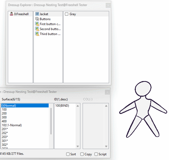 | Description | The behavior of nested dressups was recently improved. Before, nesting dressups past two layers didn't really work at all. Now it does work, however, the appearance only updates when viewing a surface at a deeper level of nesting. I'll attach a gif demonstrating this, as well as the nar of the shell used for testing. The shell has a dressup for a jacket (layer 1), buttons that can go on the jacket (layer 2), and different colors for each of the buttons (layer 3). When the jacket or the buttons are toggled on and off, the display updates immediately. When the colors of the buttons are changed, the display does not update until I change to surface100, which is the surface of the jacket. At that moment, all of the button color dressups update, and when I go back to surface0 the full display is shown correctly. So it *is* possible to see and change dressups at the third layer... but you have to briefly switch to a surface on which the button colors are only a second layer deep to make the display update. If it's possible to improve this, it would be nice. (However, I think shells with this many layers of nesting are rare, so I understand if you are not concerned with supporting this!) SSP/2.7.43 (20260122-14; Windows NT 10.0.26100) | ||||